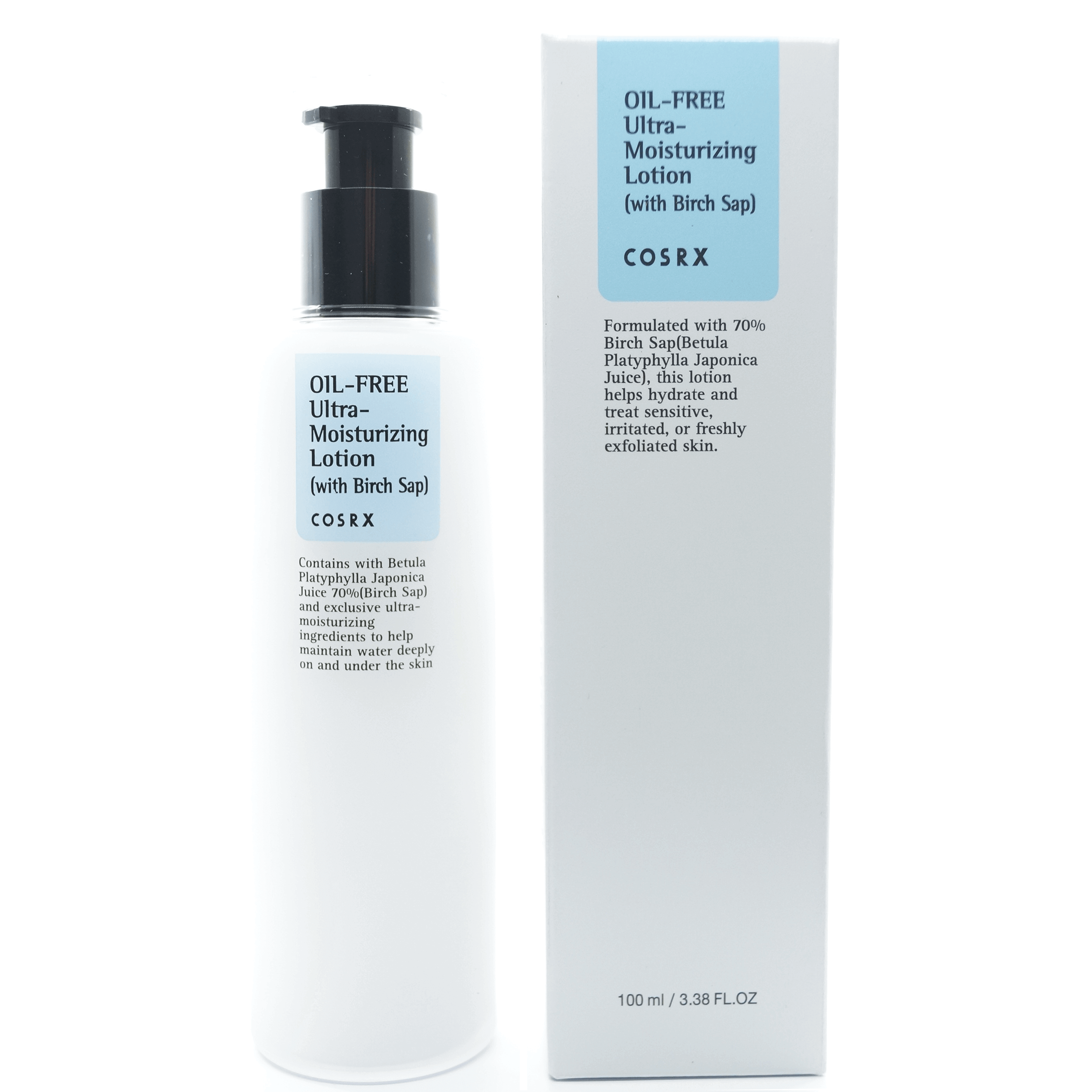 Cosrx Oil Free Ultra Moisturizing Lotion — lengvas, be aliejų losjonas-emulsija su beržų sula kasdieniam komfortiškam drėkinimui.