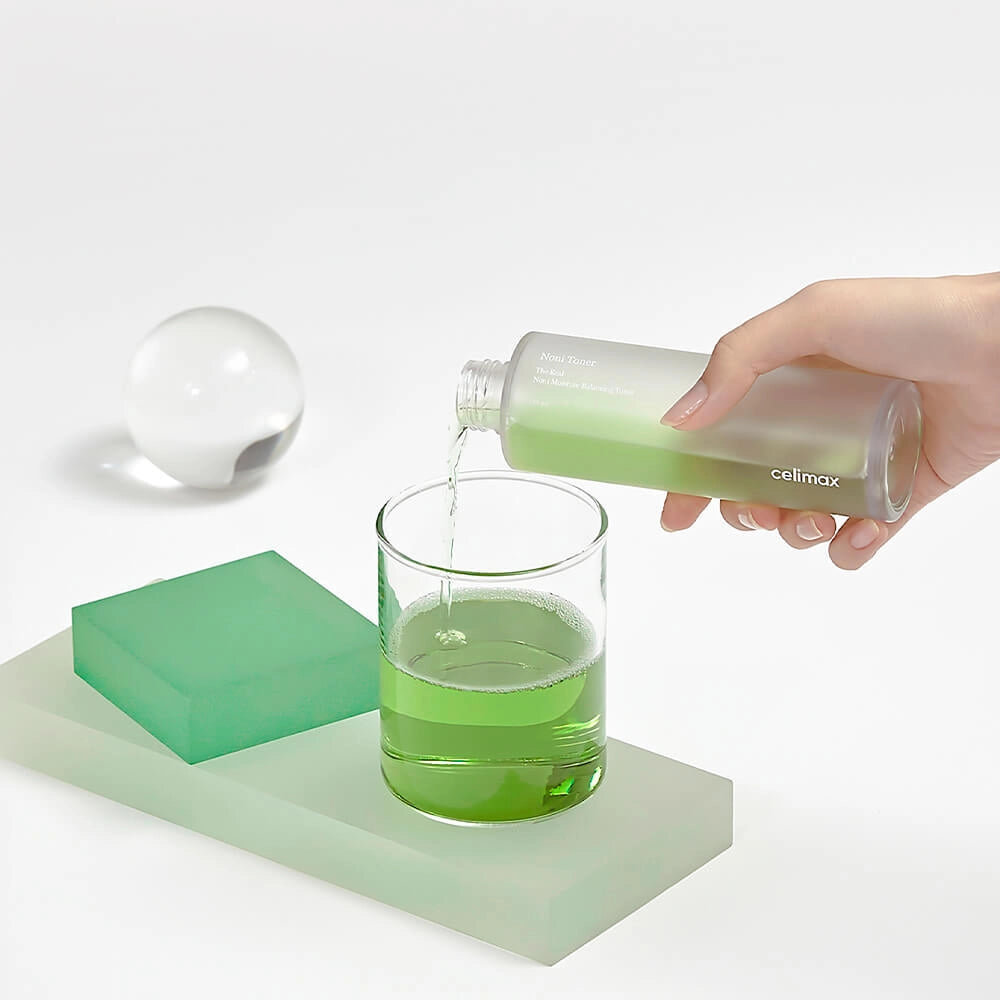 Celimax Noni Moisture Balancing Toner — drėkinantis ir odą švelninantis tonikas, padedantis subalansuoti pH po prausimo.