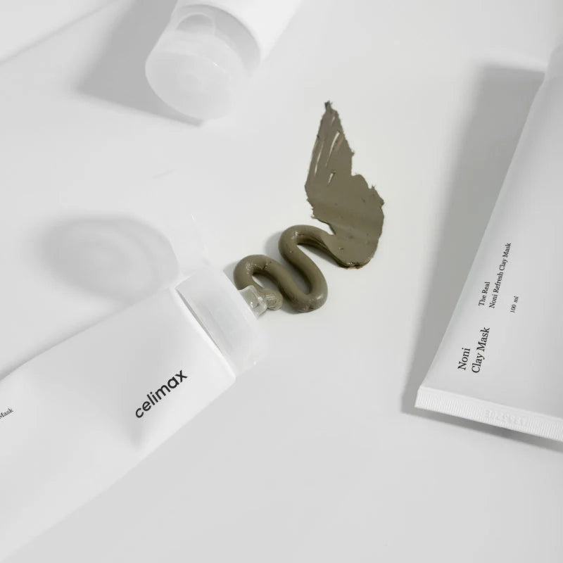 Celimax Noni Refresh Clay Mask — valomoji molio kaukė su noni ekstraktu, padedanti išvalyti poras ir suteikti odai gaivumo.