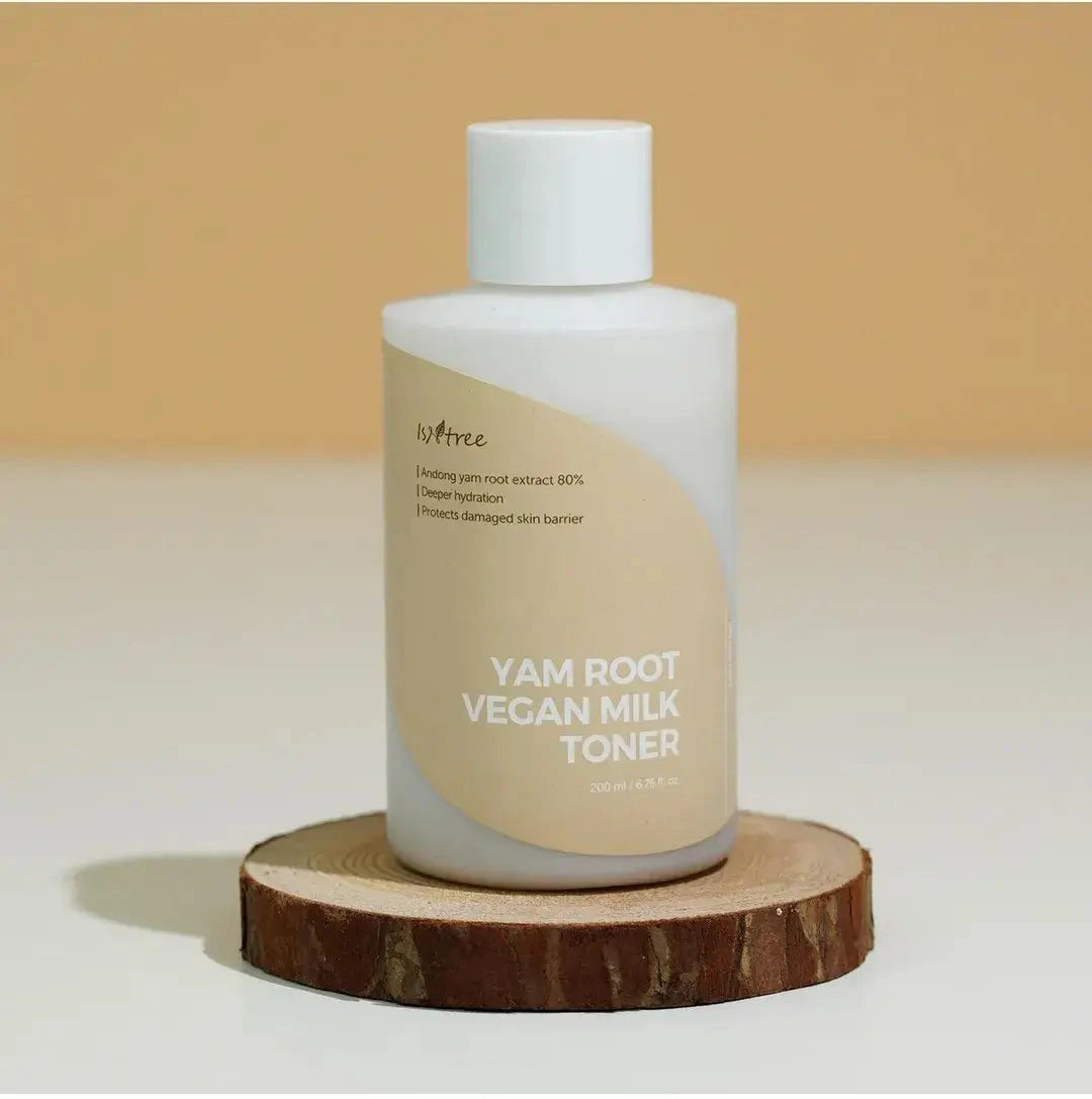 Isntree Yam Root Vegan Milk Toner — maitinamasis ir drėkinamasis tonikas su jamsų šaknies ekstraktu kasdieniam odos komfortui.