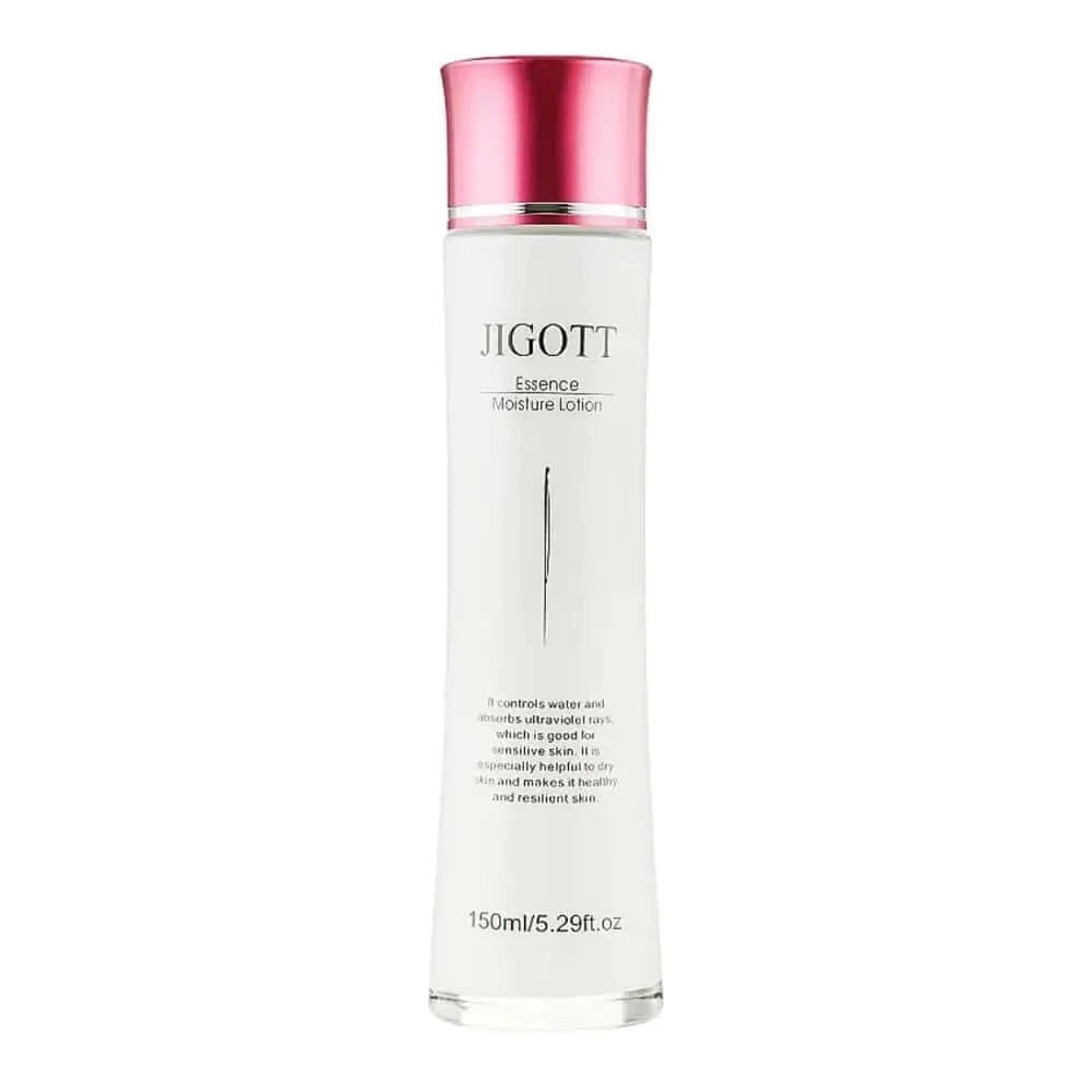Jigott Essence Moisture Skin — drėkinamasis veido tonikas, kuris padeda nuraminti odą ir suteikia jai minkštumo bei gaivos.