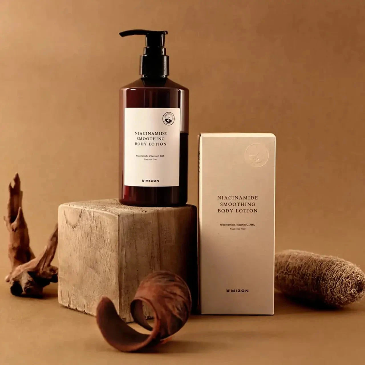 Mizon Niacinamide Smoothing Body Lotion — kūno losjonas su niacinamidu, skirtas padėti mažinti pigmentinių dėmių matomumą ir suvienodinti odos toną.