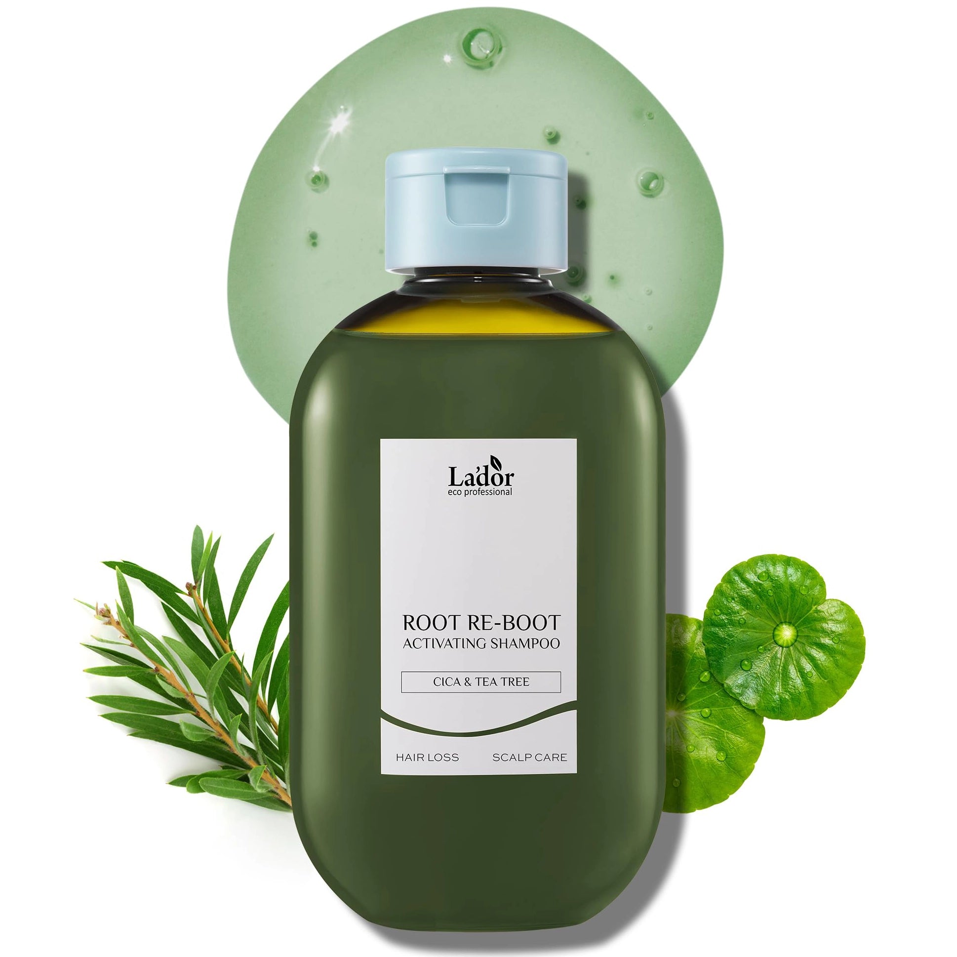 Lador Root Re-Boot Activating Shampoo Cica & Tea Tree — giliai valantis, gaivinantis šampūnas riebiai galvos odai.