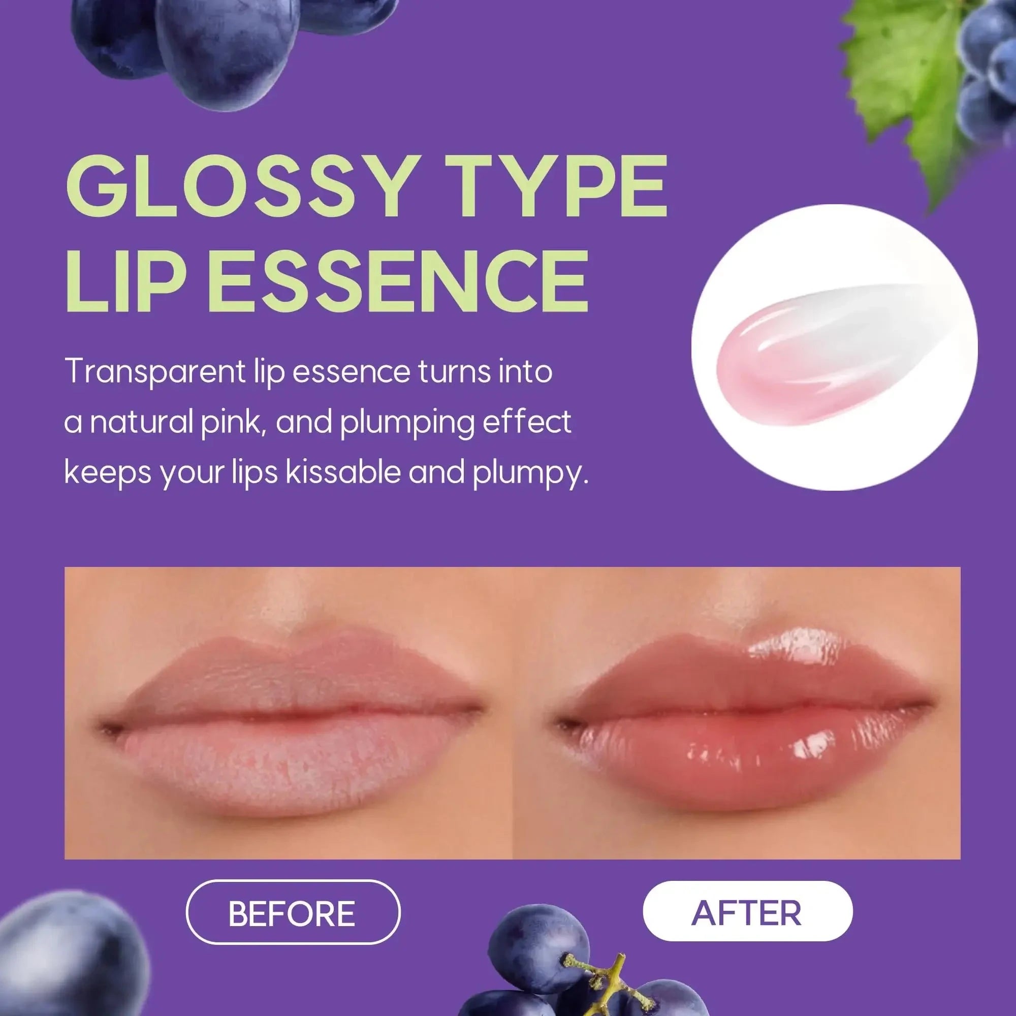Ši esencija padeda sušvelninti lūpas, sumažinti sausumo pojūtį ir vizualiai paryškinti lūpų spalvą. Lengva tekstūra maloniai pasiskirsto ir suteikia prižiūrėtą, putlesnį įvaizdį. Puikiai tinka kasdieniam naudojimui tiek vienai, tiek ant lūpų dažų.