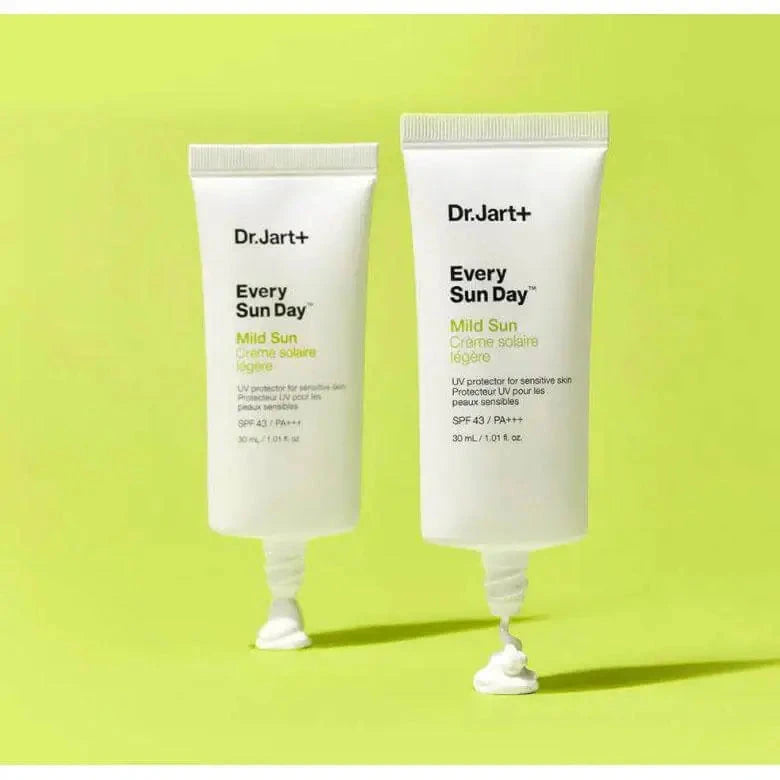 Dr. Jart+ Every Sun Day Mild Sun SPF43+/PA+++ — švelnus apsauginis kremas jautriai odai, skirtas veidui ir kūnui kasdieniam naudojimui.