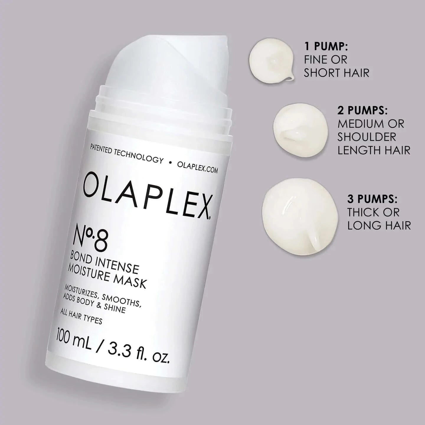 Olaplex No.8 Bond Intense Moisture Mask — intensyviai drėkinanti kaukė, suteikianti plaukams švelnumo, glotnumo ir gyvybingesnės išvaizdos.