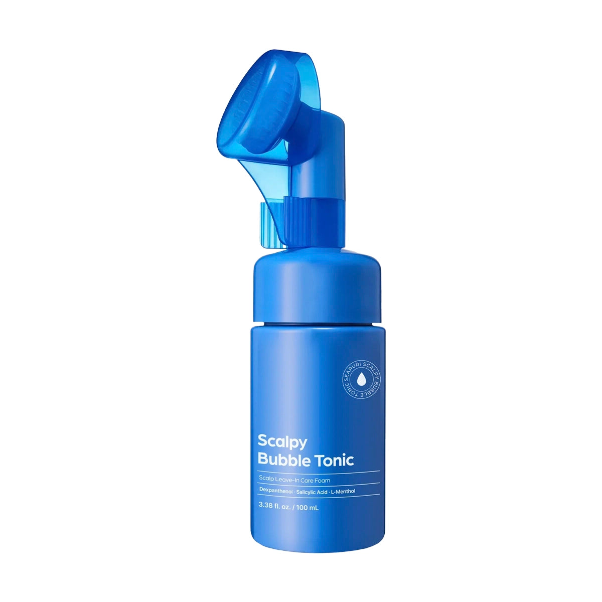 Seapuri Scalpy Bubble Tonic — burbuļinės tekstūros galvos odos tonikas su mentoliu, pantenoliu ir salicilo rūgštimi, suteikiantis gaivos pojūtį ir lengvumo plaukams.