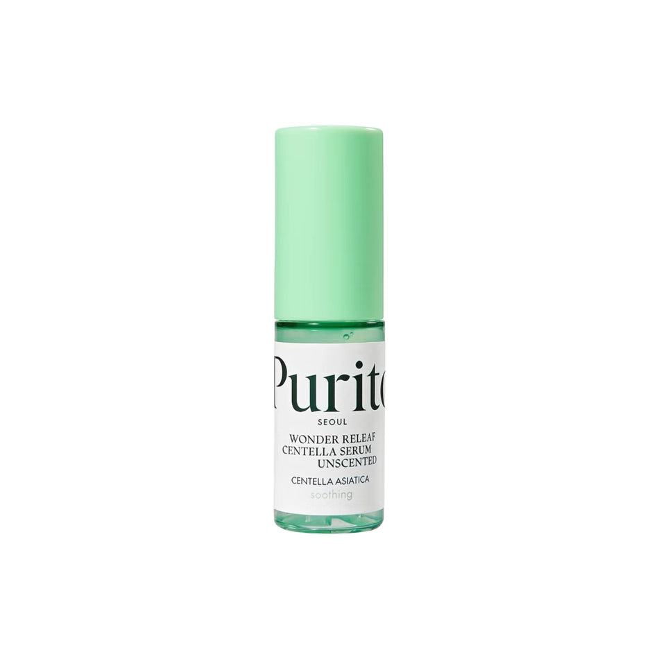 Purito Wonder Releaf Centella Serum Unscented — be kvapiklių serumas su didele Centella Asiatica koncentracija, skirtas jautrios odos komfortui.