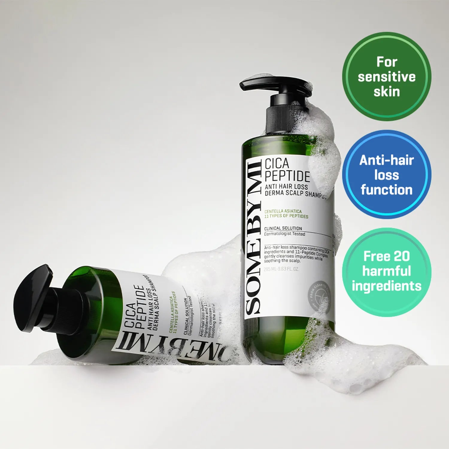 Stiprinamasis šampūnas su azijine centele ir peptidais Some By Mi Cica Peptide Anti Hair Loss Shampoo — švelniai valantis šampūnas, padedantis palaikyti komfortišką galvos odos būklę ir tvirtesnius plaukus.