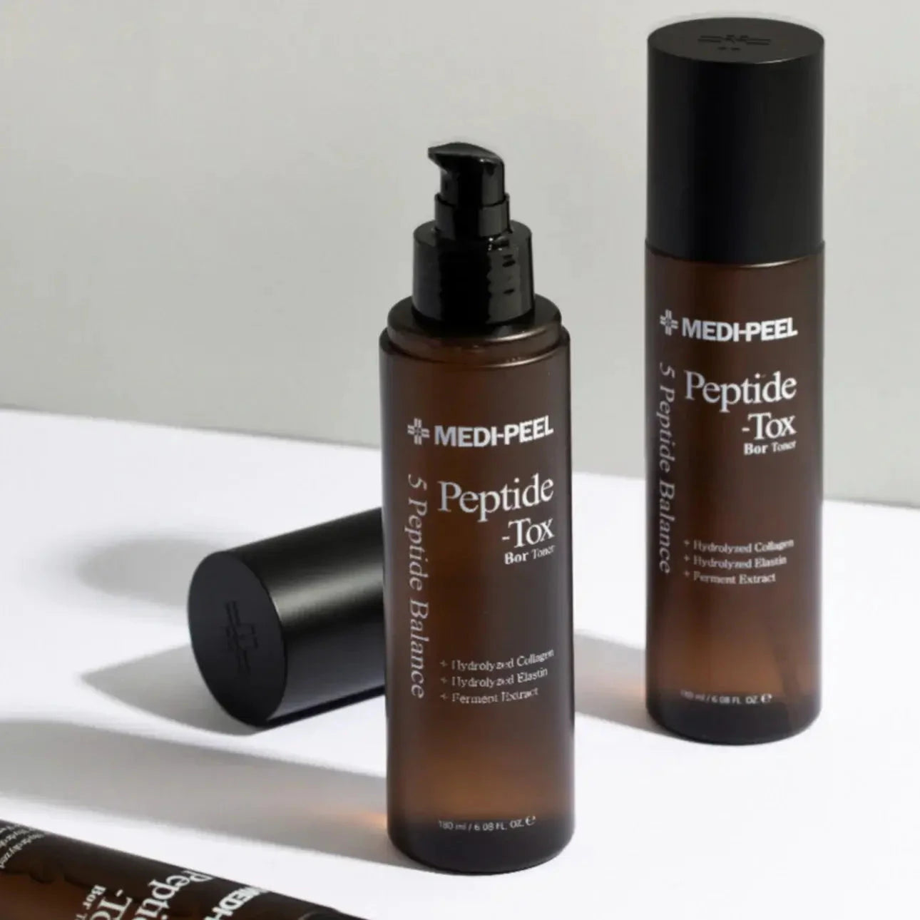 Medi-Peel Peptide-Tox Bor Toner — liftingo efekto tonikas su peptidų kompleksu, skirtas odai drėkinti, tonizuoti ir suteikti glotnumo.