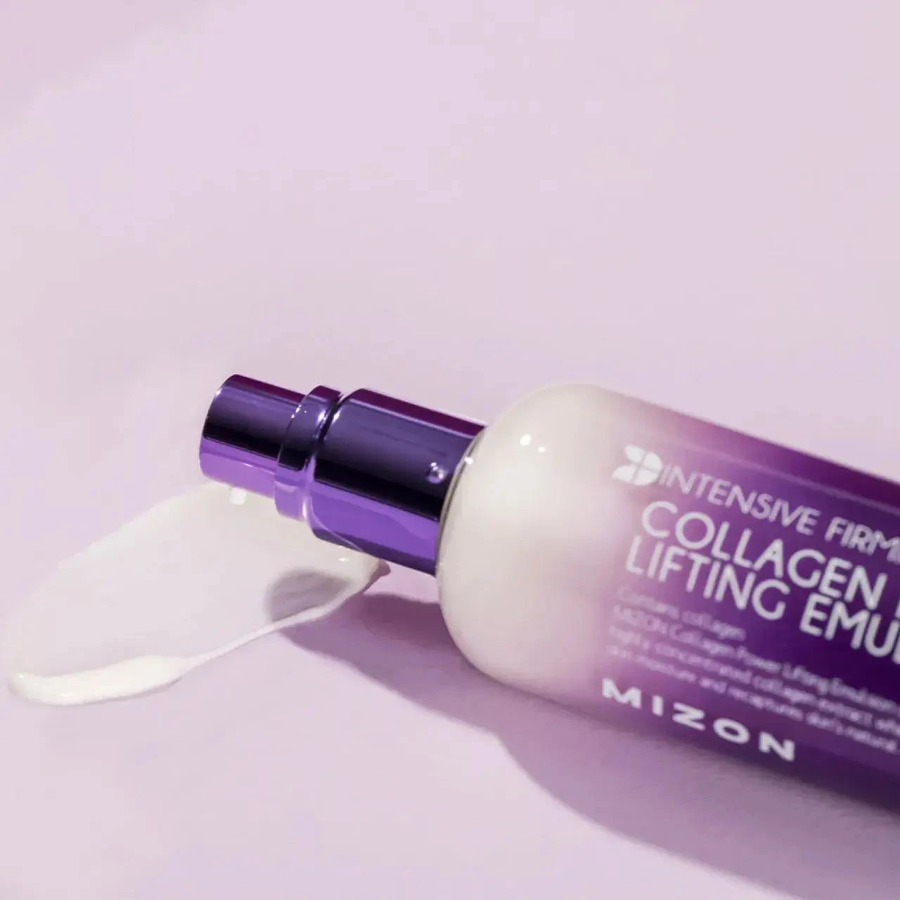 Mizon Collagen Power Lifting Emulsion — lengvos tekstūros emulsija su jūriniu kolagenu ir hialurono rūgštimi, skirta stangrumo ir drėkinimo pojūčiui.