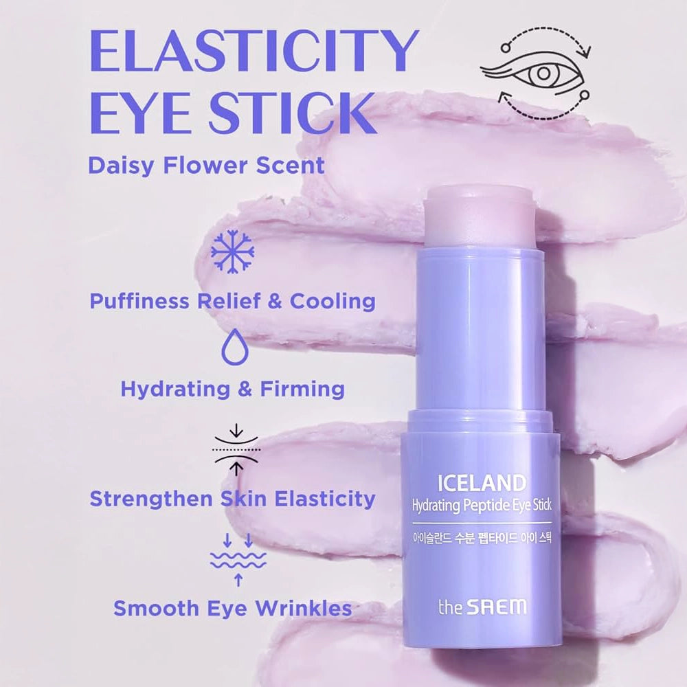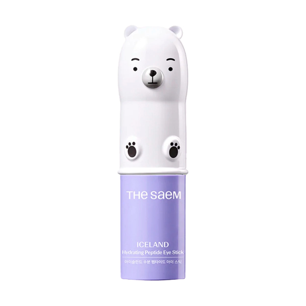 The Saem Iceland Hydrating Peptide Eye Stick — gaivinantis paakių priežiūros stikas su peptidais ir Islandijos ledynų vandeniu.