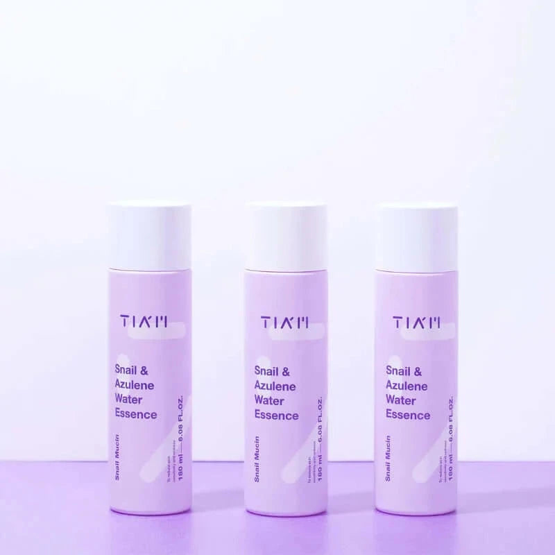 Hipoalerginė esencija TIAM Snail & Azulene Water Essence — lengvos tekstūros esencija, skirta intensyviam drėkinimui ir odos komfortui.