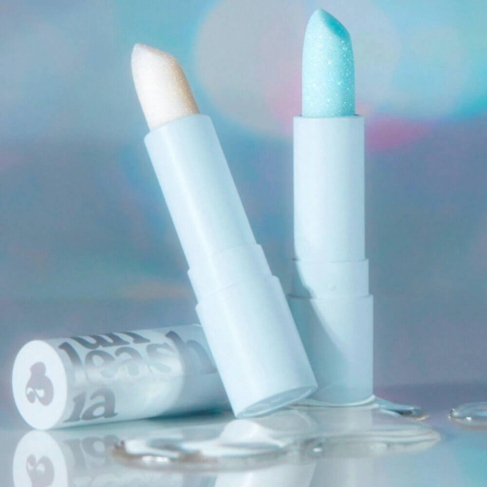 UNLEASHIA Glacier Vegan Lip Balm — veganiškas gliterio tipo lūpų balzamas, suteikiantis subtilų spindesį ir „glass lips“ efektą.