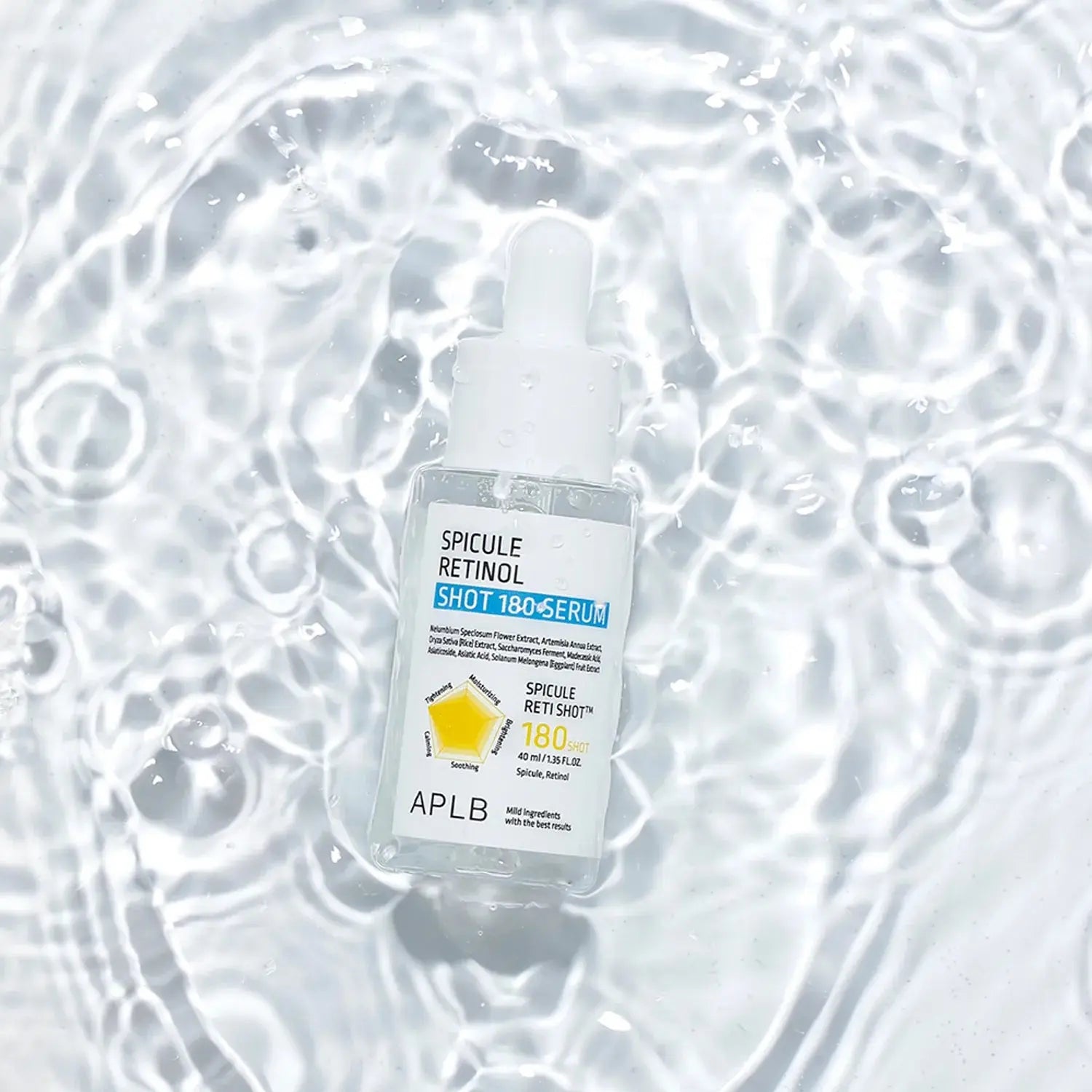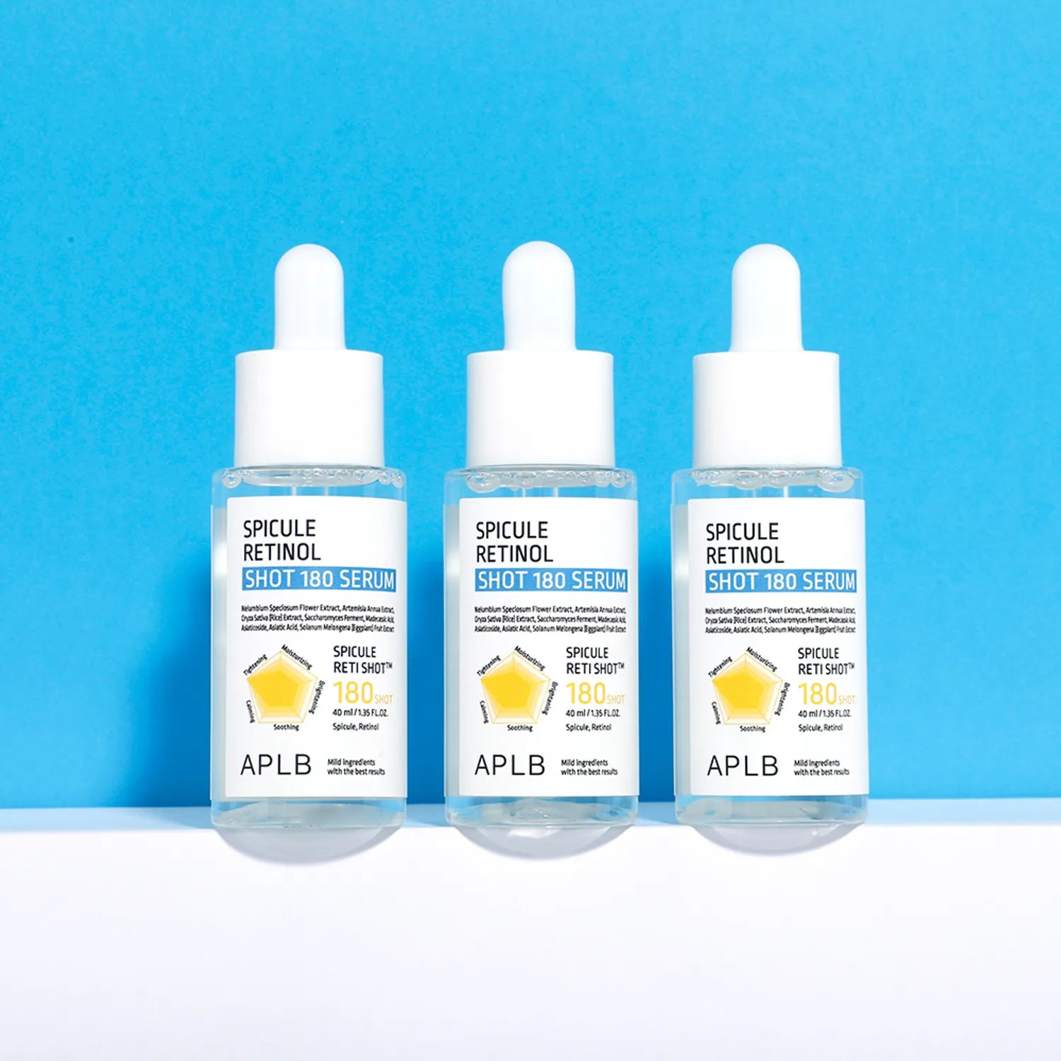 APLB Spicule Retinol Shot 180 Serum — lengvos tekstūros serumas su retinoliu ir spikulėmis, kuris padeda atkurti odos lygumą, sumažinti raukšles ir pagerinti elastingumą.