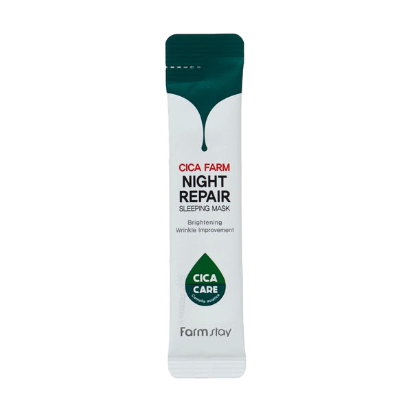 Farmstay Cica Farm Night Repair Sleeping Mask — naktinė veido kaukė su Azijos centelės ekstraktu, kuri maitina, drėkina ir atkuria odą miegant.