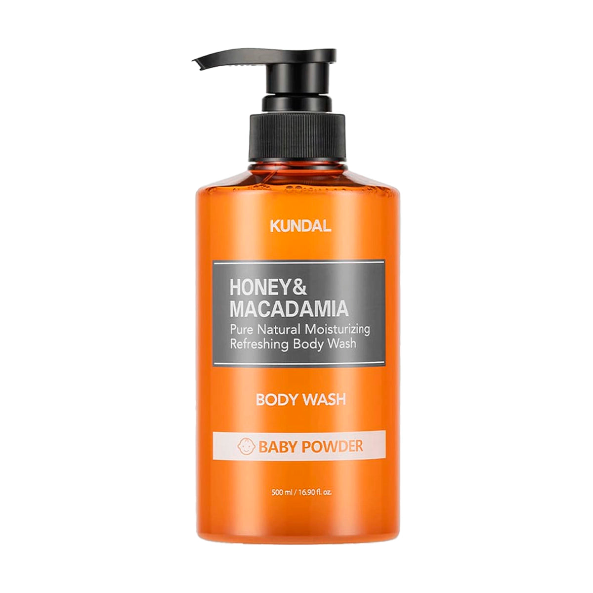 Kundal Honey & Macadamia Pure Body Wash — maitinantis kūno prausiklis su silpnai rūgščiu pH, kuris švelniai valo, drėkina ir ramina odą, padėdamas palaikyti jos balansą.