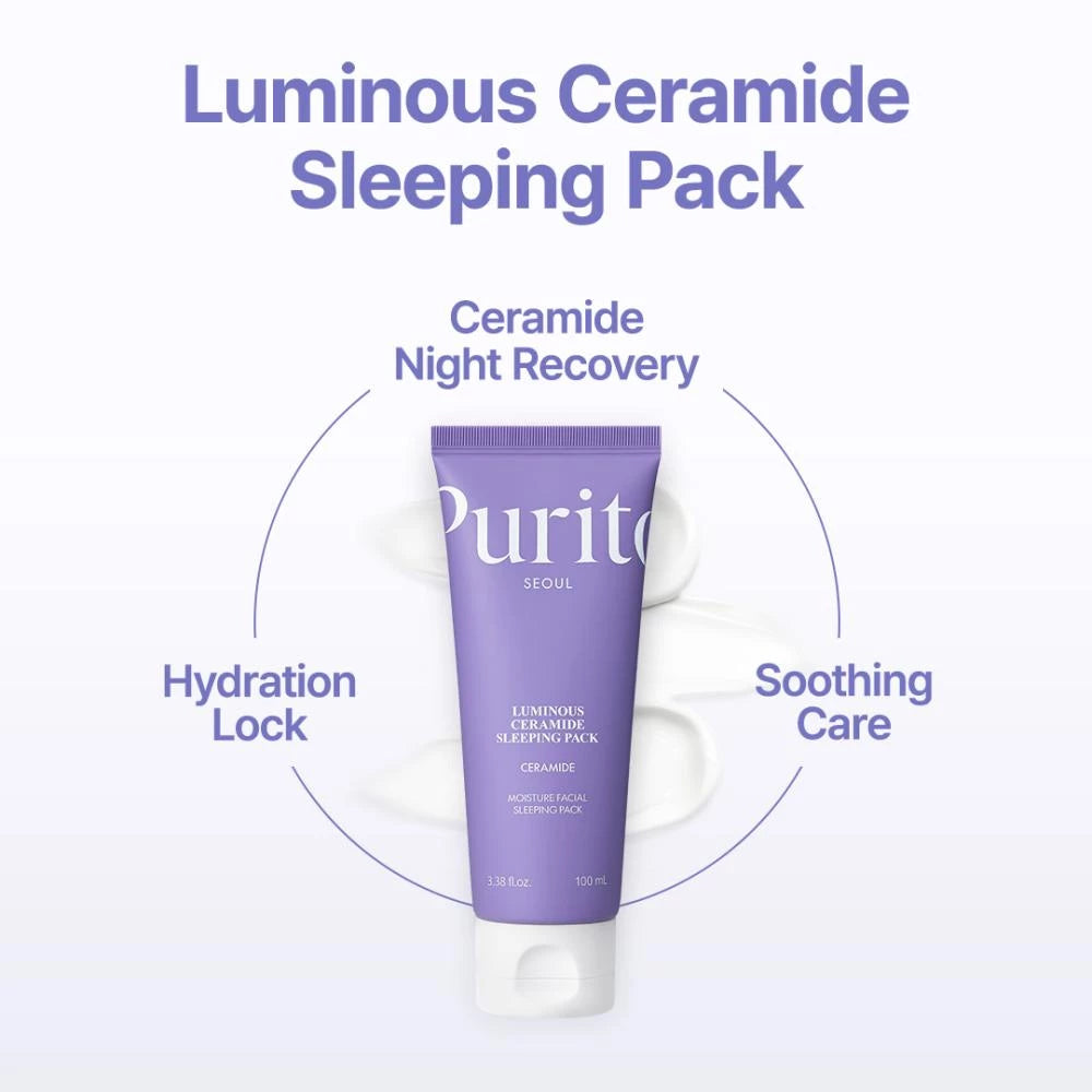 Purito Luminous Ceramide Sleeping Pack — raminamoji naktinė kaukė su centele, idealiai tinkanti giliai drėkinti ir atkurti problemišką bei jautrią odą. Kaukė akimirksniu malšina uždegimą, apsaugo nuo aknės ir spuogų, sumažina išsiplėtusių kapiliarinių ryškumą ir raudonį, idealiai tinka kuperozinei odai.