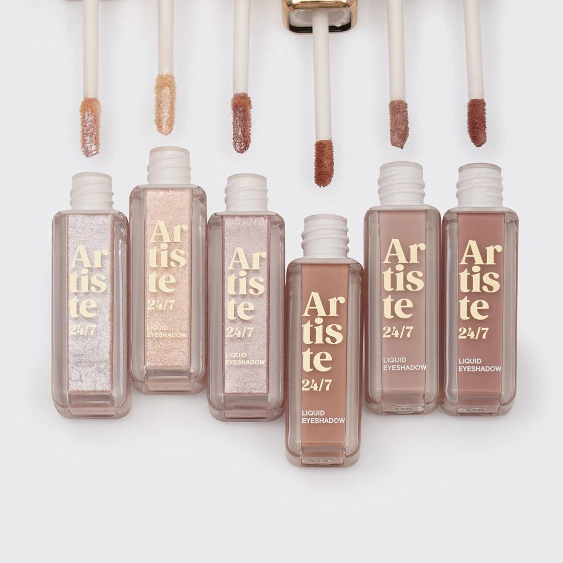 Vivienne Sabo Artiste Liquid Eyeshadow — ryškūs ir ilgai išliekantys skysti šešėliai, kurie lengvai dengiasi ir greitai fiksuojasi ant vokų.