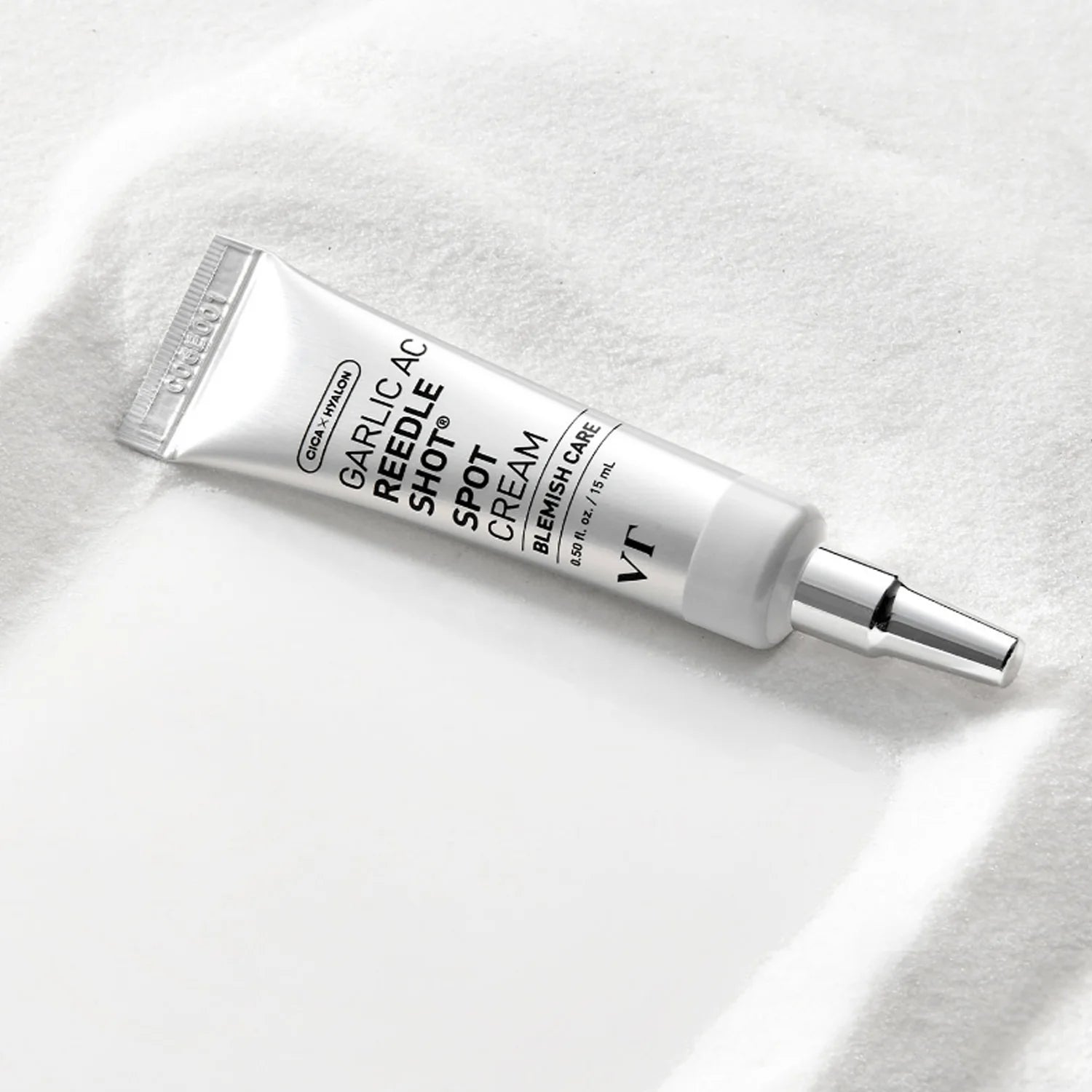 VT Cosmetics Garlic AC Reedle Shot Spot Cream — vietinis kremas su mikroadatėlėmis ir česnako ekstraktu, kuris mažina uždegimą, spartina gijimą ir padeda išvengti poakninių dėmių.
